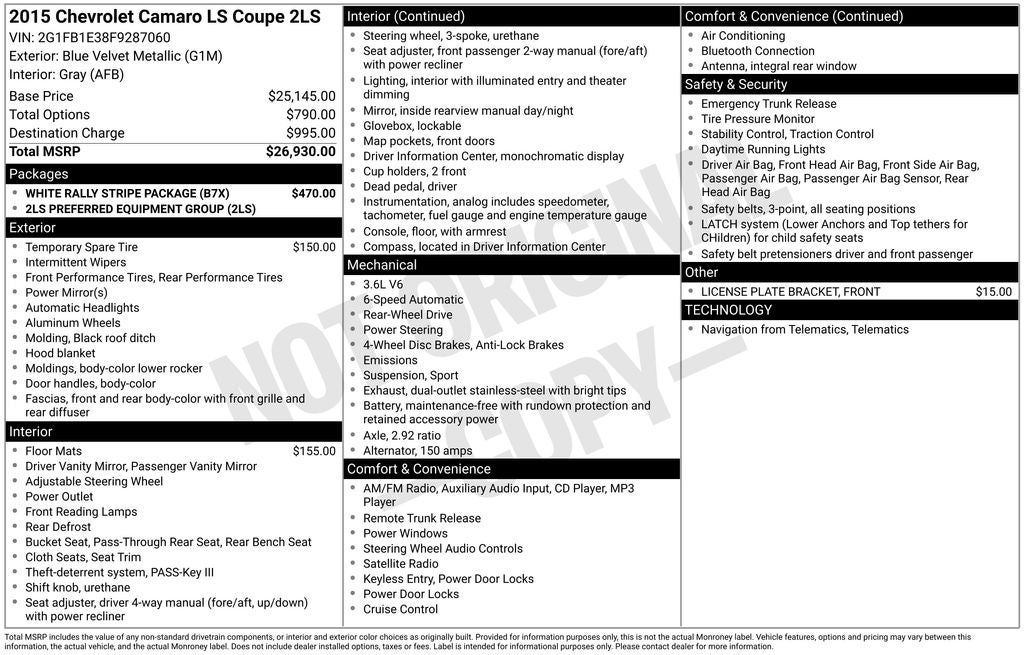 - Vehicle Name: Chevrolet Camaro