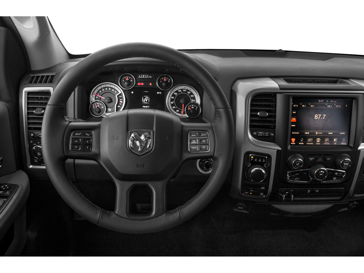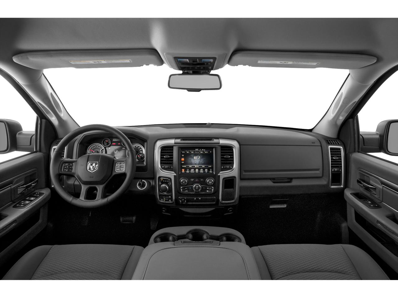 Recent Arrival! 2015 Ram 1500 Big Horn Maximum Steel Metallic Clearcoat 115V Auxiliary Power Outlet, 17 x 7 Aluminum Wheels, 26 Gallon Fuel Tank, 3.21 Rear Axle Ratio, 4-Wheel Disc Brakes, 40/20/40 Split Bench Seat, 6 Month Trial (Reg. Required), 6 Month Trial (Registration Required), 6 Speakers, 8.4 Touchscreen Display, ABS brakes, Active Grille Shutters, Air Conditioning, Alloy wheels, AM/FM radio, Ash Tray Lamp, Auto-Dimming Exterior Mirrors, Big Horn Badge, Big Horn Regional Package, Black Exterior Mirrors, Brake assist, Bright/Bright Billets Grille, Bumpers: chrome, Center Hub, Charge Only Remote USB Port, Class IV Receiver Hitch, Cloth 40/20/40 Bench Seat, Comfort Group, Compass, Delay-off headlights, Driver door bin, Dual front impact airbags, Dual front side impact airbags, Electric Shift-On-Demand Transfer Case, Electroluminescent Instrument Cluster, Electronic Shift, Electronic Stability Control, Exterior Mirrors Courtesy Lamps, Exterior Mirrors w/Heating Element, Exterior Mirrors w/Supplemental Signals, Fog Lamps, Folding Flat Load Floor Storage, For Details Go To DriveUconnect.com, Front anti-roll bar, Front Armrest w/3 Cupholders, Front Center Armrest w/Storage, Front Center Seat Cushion Storage, Front reading lights, Front wheel independent suspension, Fully automatic headlights, Glove Box Lamp, GPS Antenna Input, Harman Radio Manufacturer, Heated door mirrors, Heated Front Seats, Heated Steering Wheel, Illuminated entry, Integrated Voice Command w/Bluetooth®, Leather Wrapped Steering Wheel, Low tire pressure warning, Luxury Group, Media Hub (SD, USB, AUX), Nav-Capable! See Dealer for Details, Occupant sensing airbag, Outside temperature display, Overhead airbag, Overhead console, Overhead Console w/Garage Door Opener, Panic alarm, ParkSense Front/Rear Park Assist System, ParkView Rear Back-Up Camera, Passenger door bin, Passenger vanity mirror, Power 10-Way Driver Seat, Power door mirrors, Power Folding Mirrors, Power Heated Fold-Away Mirrors, Power Lumbar Adjust, Power steering, Power windows, Premium Cloth 40/20/40 Bench Seat, Quick Order Package 26Z Big Horn, Radio data system, Radio: Uconnect 5.0 AM/FM/BT, Radio: Uconnect 8.4A AM/FM/SXM/BT, Rear 60/40 Split Folding Seat, Rear anti-roll bar, Rear Camera & Park Assist Group, Rear Dome w/On/Off Switch Lamp, Rear seat center armrest, Rear step bumper, Rear-View Auto-Dimming Mirror w/Microphone, Remote keyless entry, Remote SD Card Slot, Remote Start & Security Group, Remote Start System, Security Alarm, SIRIUSXM Satellite Radio, Speed control, Steering Wheel Mounted Audio Controls, Storage Tray, Sun Visors w/Illuminated Vanity Mirrors, Tachometer, Tilt steering wheel, Tip Start, Traction control, Trip computer, Uconnect Access, Underhood Lamp, Universal Garage Door Opener, Variably intermittent wipers, Voltmeter, Wheels: 20 x 8 Aluminum Chrome Clad.
