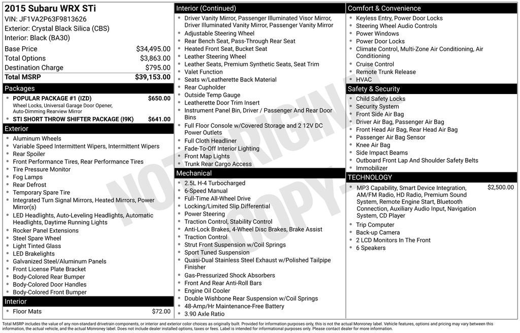- Vehicle Name: Subaru WRX STI
