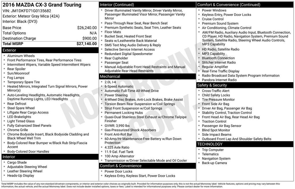 • Vehicle Name: Mazda CX-3