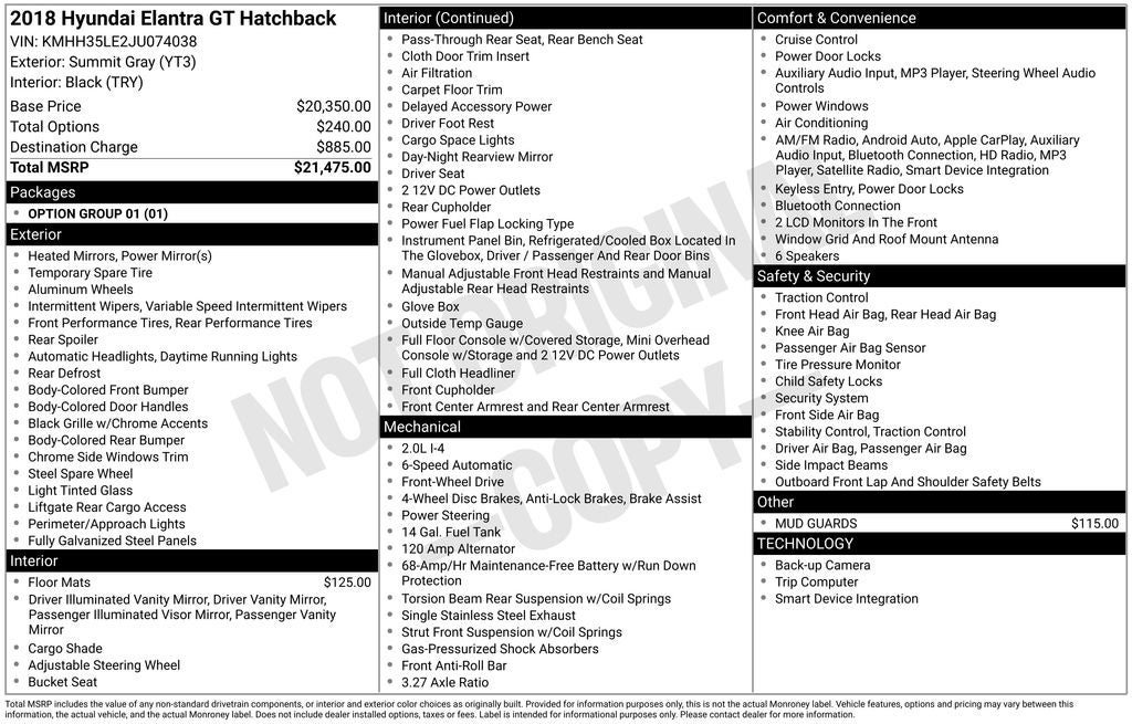 - Vehicle Name: Hyundai Elantra GT