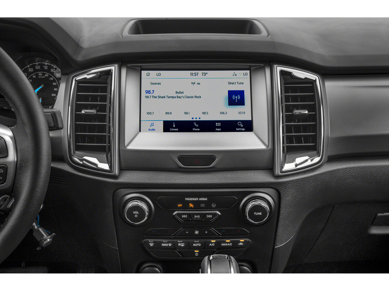 The exterior of the Ranger XLT exudes a bold, sporty presence with its Magnetic Painted accents, Black Mesh Grille, and 17-inch Magnetic Painted Aluminum Sport wheels. The interior is equally impressive, with premium features like heated front seats, a leather-wrapped steering wheel, and a 110V AC power outlet for your on-the-go needs.