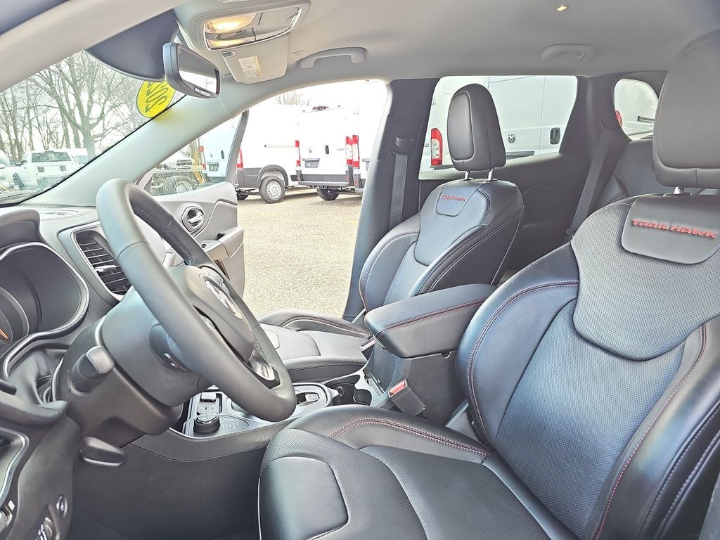 Recent Arrival! 2022 Jeep Cherokee Trailhawk Granite Crystal Metallic Clearcoat 1-Year SiriusXM Guardian Trial, 3.517 Final Drive Ratio, 4-Wheel Disc Brakes, 4G LTE Wi-Fi Hot Spot, 5-Year SiriusXM Traffic Service, 5-Year SiriusXM Travel Link Service, 6 Speakers, 7 & 4 Pin Wiring Harness, 8.4 Touchscreen Display, ABS brakes, Air Conditioning, Alloy wheels, AM/FM radio: SiriusXM, Anti-whiplash front head restraints, Apple CarPlay, Apple CarPlay/Android Auto, Auto-Dimming Rear-View Mirror, Automatic temperature control, Brake assist, Class III Receiver Hitch, Cloth/Premium Vinyl Bucket Seats, Comfort/Convenience Group, Compass, Delay-off headlights, Driver door bin, Driver vanity mirror, Dual front impact airbags, Dual front side impact airbags, Electronic Stability Control, Exterior Mirrors w/Memory, For Details, Visit DriveUconnect.com, For More Info, Call 800-643-2112, Four wheel independent suspension, Front anti-roll bar, Front Bucket Seats, Front Center Armrest, Front dual zone A/C, Front fog lights, Front License Plate Bracket, Front reading lights, Fully automatic headlights, Google Android Auto, GPS Antenna Input, GPS Navigation, Hands-Free Power Liftgate, HD Radio, Heated door mirrors, Heated front seats, Heated steering wheel, Illuminated entry, Integrated Voice Command w/Bluetooth®, K-Black Door Trim Panel Appliques, K-Black Interior Accents, Knee airbag, Leather Shift Knob, Low tire pressure warning, Occupant sensing airbag, Off Road Suspension, Off-Road Info Pages, Outside temperature display, Overhead airbag, Overhead console, Panic alarm, ParkView Rear Back-Up Camera, Passenger door bin, Passenger vanity mirror, Power 8-Way Adjustable Front Passenger Seat, Power door mirrors, Power driver seat, Power Passenger Lumbar Adjust, Power steering, Power windows, Premium Alpine Speaker System, Premium Leather Package, Premium Leather Trimmed Bucket Seats, Quick Order Package 27E, Radio data system, Radio: Uconnect 4 w/8.4 Display, Radio: Uconnect 4C Nav w/8.4 Display, Radio/Driver Seat/Exterior Mirrors Memory, Rain sensing wipers, Rear anti-roll bar, Rear reading lights, Rear seat center armrest, Rear side impact airbag, Rear window defroster, Rear window wiper, Remote keyless entry, Roof rack: rails only, Security Alarm, SiriusXM Radio Service, SiriusXM Satellite Radio, SiriusXM Traffic Plus, SiriusXM Travel Link, Sound & Nav Group, Speed control, Speed-sensing steering, Split folding rear seat, Spoiler, Steering wheel mounted audio controls, Tachometer, Telescoping steering wheel, Tilt steering wheel, Traction control, Trailer Tow Group, Trailer Tow Wiring Harness, Trip computer, Turn signal indicator mirrors, Universal Garage Door Opener, USB Host Flip, Variably intermittent wipers, Ventilated Front Seats, Voltmeter, Wheels: 17 x 7.5 Black Painted Aluminum, Wheels: 17 x 7.5 Painted Diamond Cut Aluminum.