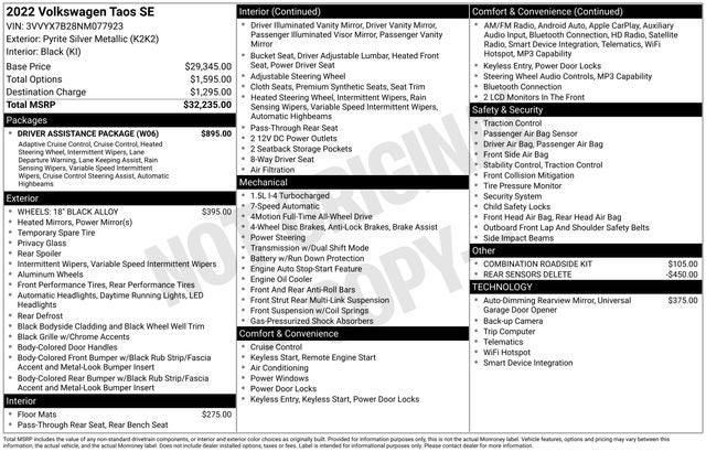Step inside the well-appointed cabin and you'll be surrounded by a host of convenience and technology features, including a premium infotainment system, SiriusXM radio, and a suite of advanced safety systems. The Taos 1.5T SE also boasts a spacious and versatile interior, with ample room for passengers and cargo alike.