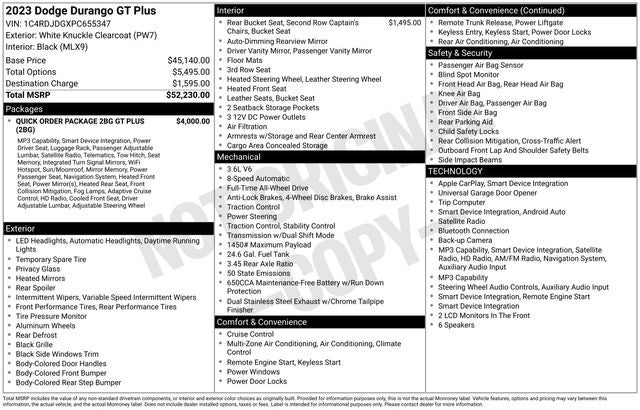 Safety is paramount in the Durango GT Plus, with advanced features such as Full Speed Forward Collision Warning Plus, Adaptive Cruise Control, and a comprehensive suite of airbags. You can drive with confidence, knowing your family is protected.