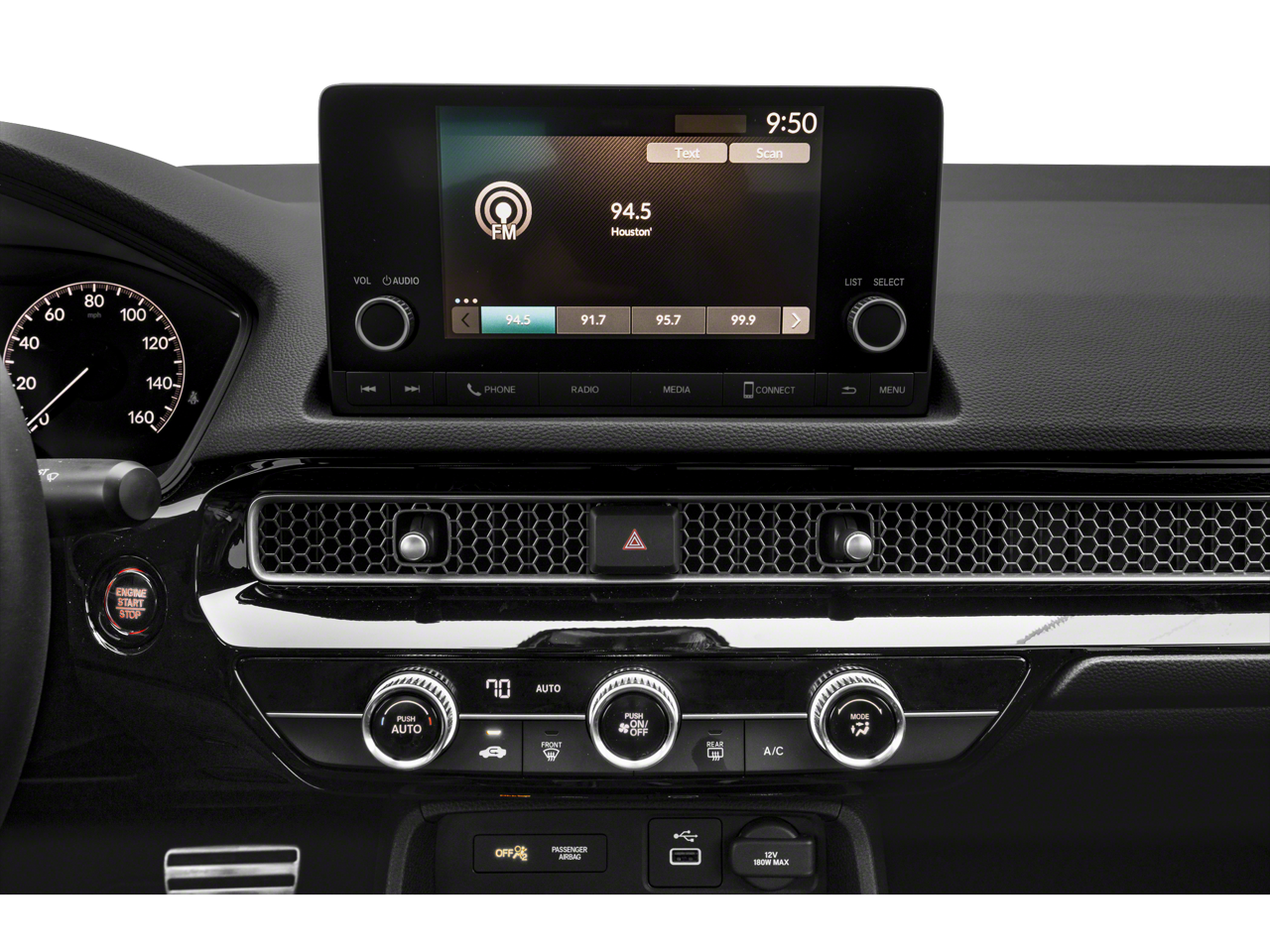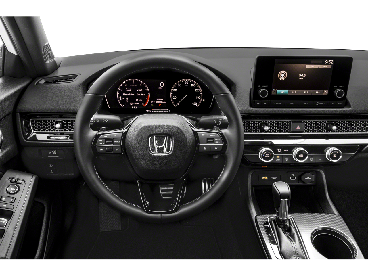 The interior of the Civic Sport is designed with your comfort and convenience in mind. Dual-zone climate control ensures everyone on board stays comfortable, while the 180-watt audio system with 8 speakers provides an immersive listening experience. The intuitive infotainment system seamlessly integrates your smartphone with Apple CarPlay and Android Auto, keeping you connected and entertained.