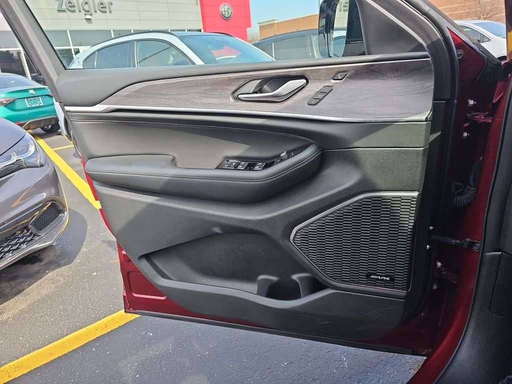 Certified. 2023 Jeep Grand Cherokee L Overland Velvet Red Pearlcoat 10 Speakers, 2nd Row Manual Window Shades, 3.45 Rear Axle Ratio, 3rd row seats: split-bench, 4-Wheel Disc Brakes, ABS brakes, Active Noise Control System, Adaptive suspension, Air Conditioning, Alloy wheels, AM/FM radio: SiriusXM with 360L, Anti-whiplash front head restraints, ATC w/4 Zone Temp Control, Audio memory, Auto High-beam Headlights, Auto-dimming door mirrors, Auto-dimming Rear-View mirror, Auto-leveling suspension, Automatic temperature control, Brake assist, Bumpers: body-color, Compass, Delay-off headlights, Driver door bin, Driver Power Seat Back Massage, Driver vanity mirror, Dual front impact airbags, Dual front side impact airbags, Electronic Stability Control, Emergency communication system, Four wheel independent suspension, Front anti-roll bar, Front Bucket Seats, Front Center Armrest w/Storage, Front dual zone A/C, Front fog lights, Front Passenger Power Seat Back Massage, Front reading lights, Fully automatic headlights, Garage door transmitter, Heated door mirrors, Heated front seats, Heated rear seats, Heated steering wheel, Illuminated entry, Knee airbag, Low tire pressure warning, Luxury Tech Group IV, Memory seat, Nappa Leather Seats, Nappa Leather Seats (TL), Navigation System, Normal Duty Suspension, Occupant sensing airbag, Outside temperature display, Overhead airbag, Overhead console, Panic alarm, Passenger door bin, Passenger Seat Memory, Passenger vanity mirror, Power Adjust 12-Way Driver Seat, Power Adjust 12-Way Front Passenger Seat, Power door mirrors, Power driver seat, Power Fold Seatbacks, Power Liftgate, Power moonroof, Power passenger seat, Power steering, Power windows, Quick Order Package 23N, Radio data system, Radio: Uconnect 5 Nav w/10.1 Display, Rain sensing wipers, Rear air conditioning, Rear anti-roll bar, Rear reading lights, Rear window defroster, Rear window wiper, Rearview Autodim Digital Display Mirror, Reclining 3rd row seat, Remote keyless entry, Security system, Speed control, Speed-Sensitive Wipers, Split folding rear seat, Spoiler, Steering wheel memory, Steering wheel mounted audio controls, Tachometer, Telescoping steering wheel, Tilt steering wheel, Traction control, Trip computer, Turn signal indicator mirrors, Variably intermittent wipers, Ventilated front seats, Voltmeter, Wheels: 20 x 8.5 Machined Face Aluminum, Wireless Charging Pad.