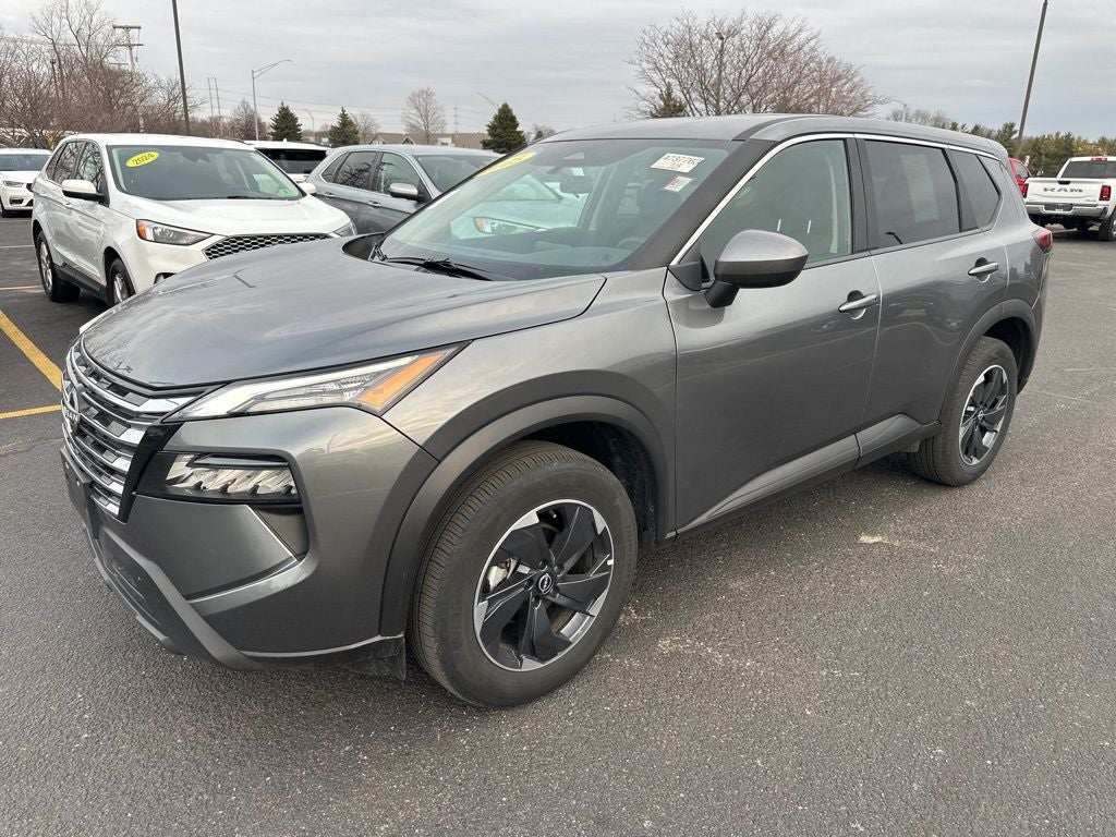 Recent Arrival! 2025 Nissan Rogue SV Gun Metallic 4-Wheel Disc Brakes, 6 Speakers, ABS brakes, Air Conditioning, Alloy wheels, AM/FM radio: SiriusXM, Android Auto and Apple CarPlay, Auto High-beam Headlights, Automatic temperature control, Brake assist, Bumpers: body-color, Cloth Seat Trim with Patterned Inserts, Delay-off headlights, Driver door bin, Driver vanity mirror, Dual front impact airbags, Dual front side impact airbags, Electronic Stability Control, Emergency communication system: NissanConnect Services, Four wheel independent suspension, Front anti-roll bar, Front Bucket Seats, Front Bucket Seats with 8-Way Power Driver Seat, Front Center Armrest, Front dual zone A/C, Front reading lights, Fully automatic headlights, Heated door mirrors, Illuminated entry, Knee airbag, Low tire pressure warning, Occupant sensing airbag, Outside temperature display, Overhead airbag, Overhead console, Panic alarm, Passenger door bin, Passenger vanity mirror, Power door mirrors, Power driver seat, Power Liftgate, Power steering, Power windows, Radio data system, Radio: NissanConnect with 6 Speakers, Rear anti-roll bar, Rear seat center armrest, Rear side impact airbag, Rear window defroster, Rear window wiper, Remote keyless entry, Speed control, Speed-sensing steering, Speed-Sensitive Wipers, Split folding rear seat, Spoiler, Steering wheel mounted audio controls, Tachometer, Telescoping steering wheel, Tilt steering wheel, Traction control, Trip computer, Variably intermittent wipers, Wheels: 18 Dark Painted Machine Finished Alloy.
