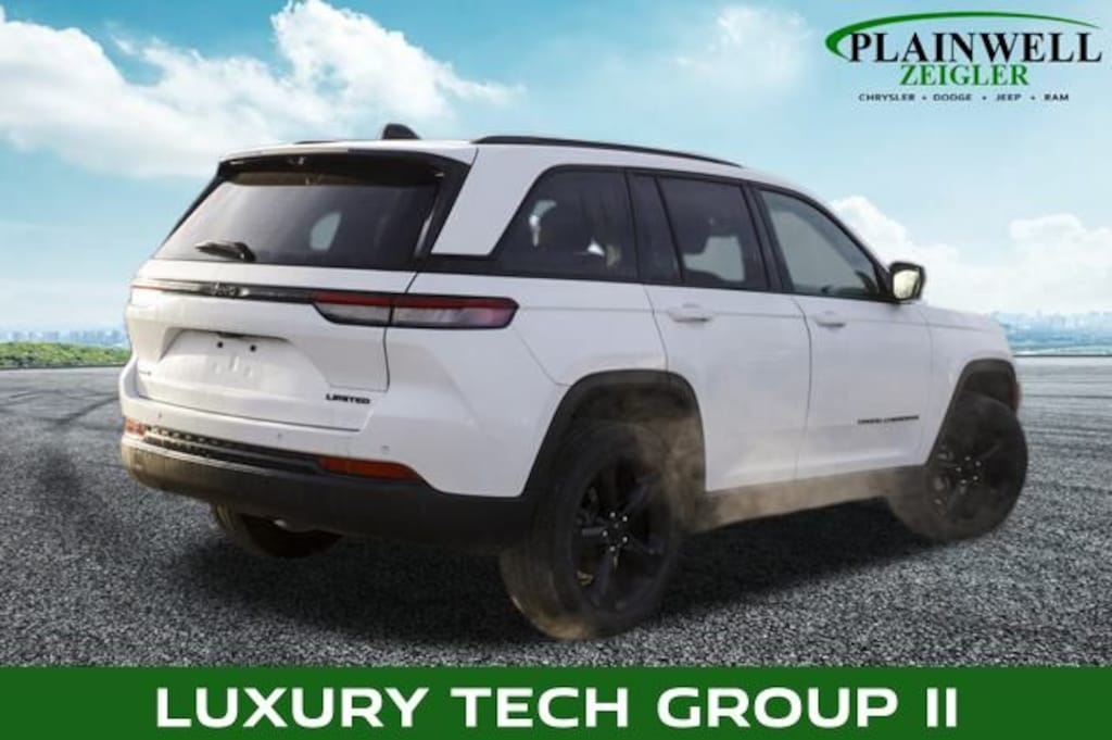 Bright White Clearcoat 2023 Jeep Grand Cherokee Limited Black Appearance Package 4WD 8-Speed Automatic 3.6L V6 24V VVT 4WD, 2nd-Row Manual Window Shades, 6 Speakers, Active Noise Control System, Air Conditioning, AM/FM radio: SiriusXM with 360L, Audio memory, Auto High-beam Headlights, Auto-Dimming Exterior Driver Mirror, Black Appearance Package, Brake assist, Capri Leatherette w/Axis II Seats, Delay-off headlights, DUAL ZONE, Electronic Stability Control, Four wheel independent suspension, Front Bucket Seats, Front dual zone A/C, Front fog lights, Front/Rear Doors & Liftgate w/Passive Entry, Gloss Black Exterior Accents, Heated front seats, Heated rear seats, Integrated Off-Road Camera, Intersection Collision Assist System, Luxury Tech Group II, Memory seat, Memory Steering Column, Molded In Color Black/Gloss Black Roof Rails, Navigation System, Normal Duty Suspension, Panic alarm, ParkSense Front/Rear Park Assist w/Stop, ParkView Rear Back-Up Camera, Power door mirrors, Power driver seat, Power Liftgate, Power passenger seat, Power steering, Power Tilt/Telescope Steering Column, Power windows, Quick Order Package 23E, Radio data system, Radio: Uconnect 5 Nav w/10.1" Display, Rain Sensitive Windshield Wipers, Rear Back-Up Camera Washer, Rear window defroster, Rear window wiper, Rearview Autodim Digital Display Mirror, Remote keyless entry, Security system, Speed control, Speed-Sensitive Wipers, Split folding rear seat, Spoiler, Steering wheel mounted audio controls, Surround View Camera System, Turn signal indicator mirrors, Variably intermittent wipers, Ventilated Front Seats, Wheels: 20" x 8.5" Gloss Black Painted Aluminum, Wireless Charging Pad.
