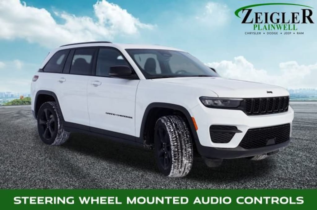 Bright White Clearcoat 2023 Jeep Grand Cherokee Altitude X Appearance Package 4WD 8-Speed Automatic 3.6L V6 24V VVT 4WD, 115V Auxiliary Power Outlet, 18" 5-Spoke Painted Aluminum Wheels, Alloy wheels, Altitude Appearance Package, Black Headliner, Brake assist, Capri Leatherette/Suede Seats, Delete Laredo Badge, Electronic Stability Control, Gloss Black Exterior Accents, Heated Front Seats, Heated Steering Wheel, Molded In Color Black/Gloss Black Roof Rails, Panic alarm, ParkView Rear Back-Up Camera, Power driver seat, Power Liftgate, Power steering, Power Sunroof (DISC), Power windows, Quick Order Package 23B Altitude, Radio: Uconnect 5 w/8.4" Display, Rain Sensitive Windshield Wipers, Remote keyless entry, Secondary Active Grille Shutters, Security system, Selectable Tire Fill Alert, Steering wheel mounted audio controls, Wheels: 17" x 6.5" Fully Painted Aluminum, Wireless Charging Pad.